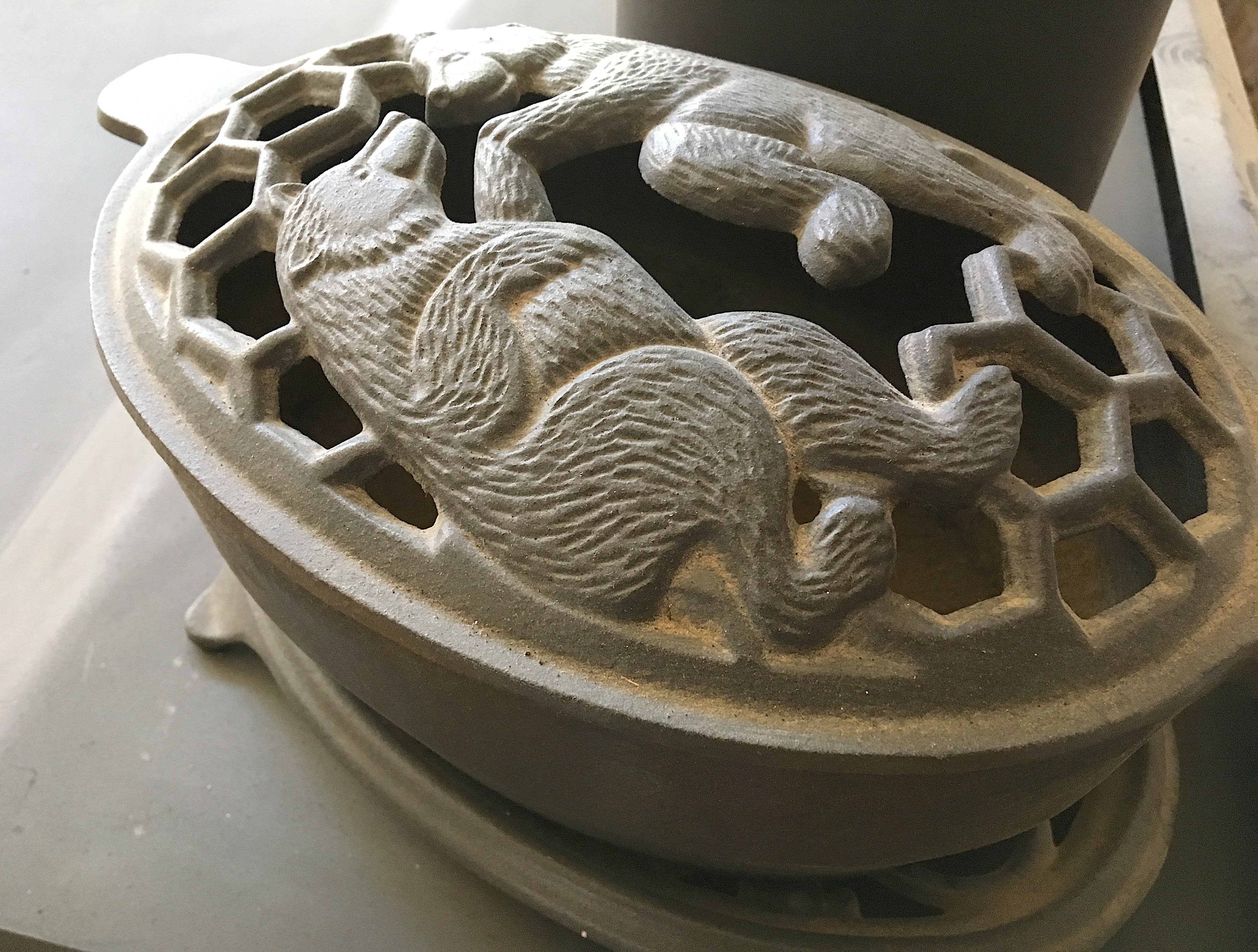 This cast iron trivet can be used to add humidity to the air, by removing the lid and simply filling with water.