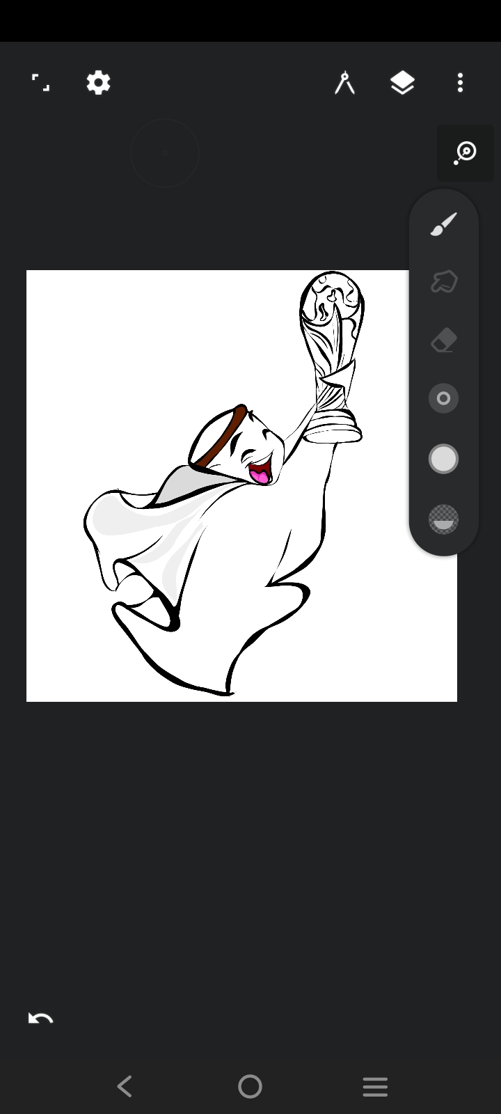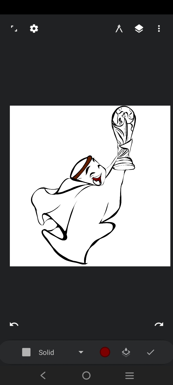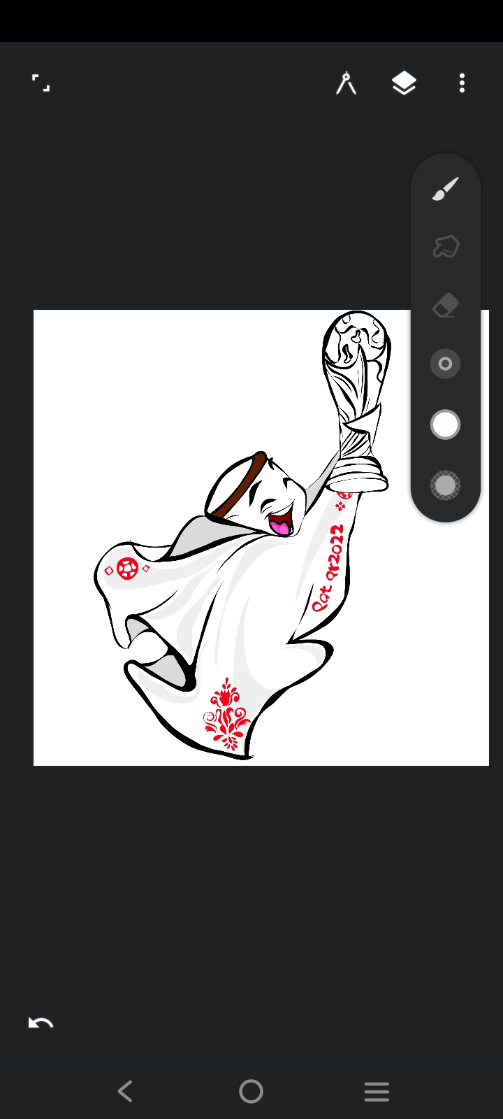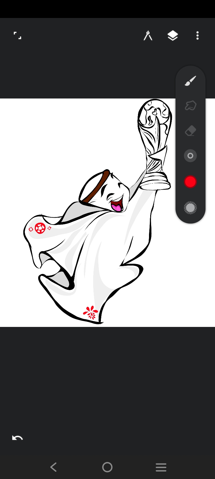 First I took an art brush to do the art. Then I sketched the world cup with black paint.