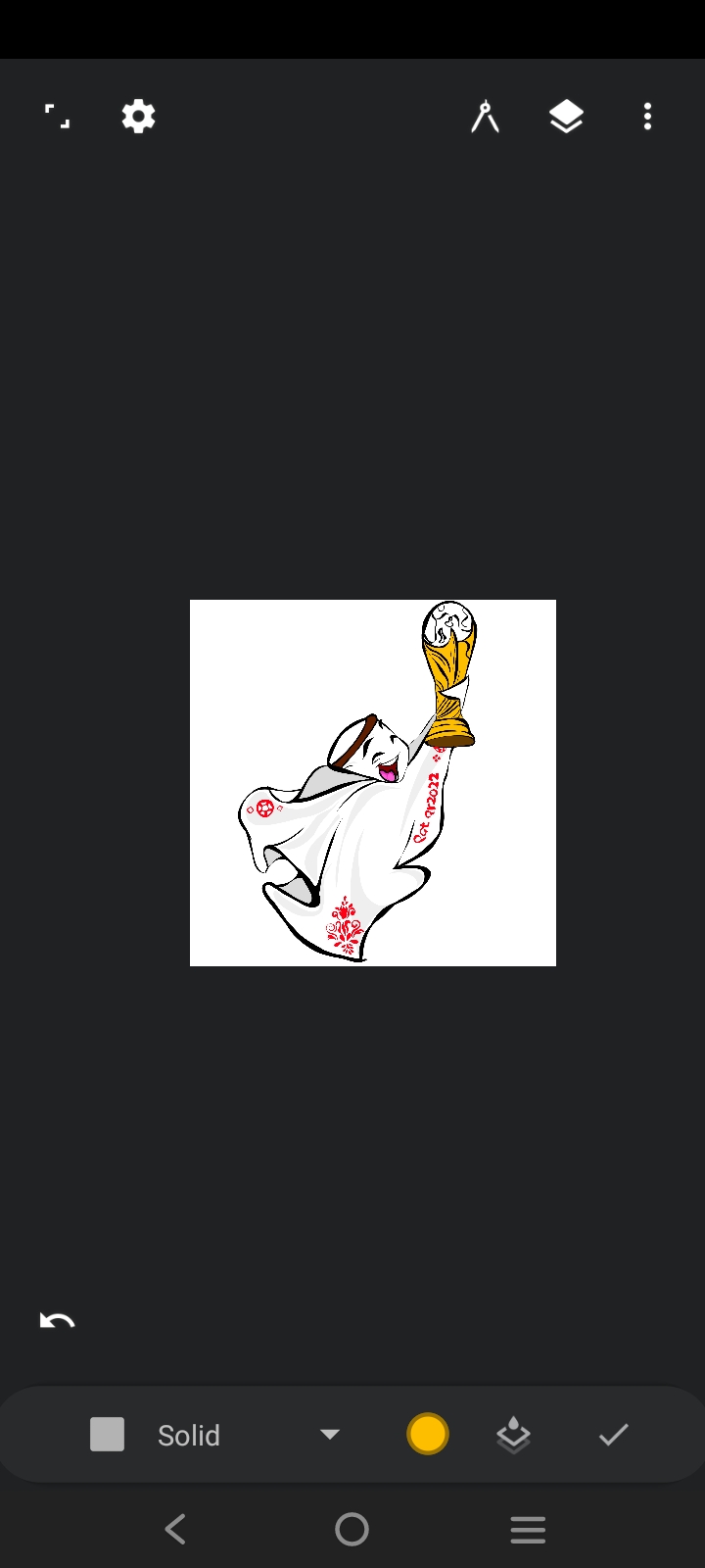 Select yellow color to make art. I painted the lower part of the world cup with yellow paint and the upper part with blue paint.