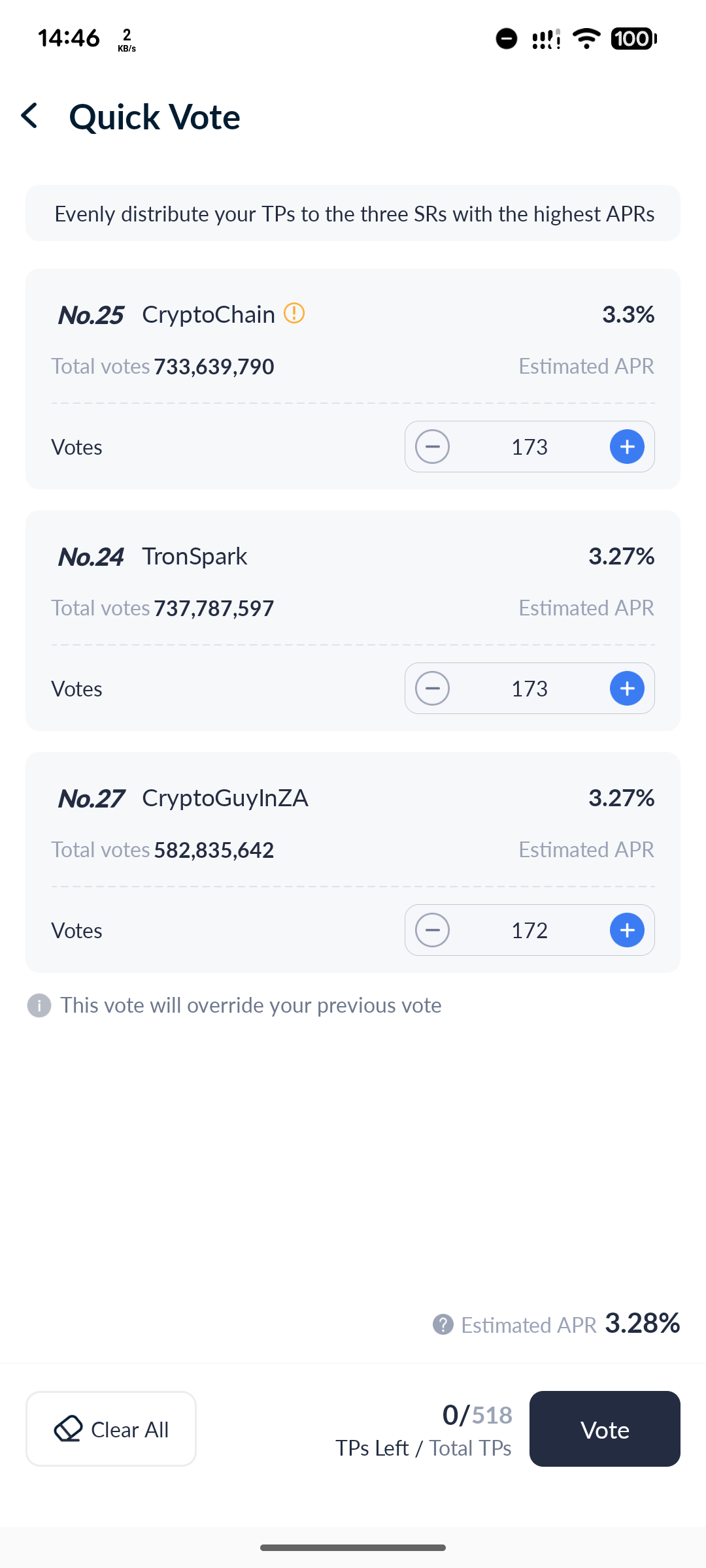 In this step, I'm quick voting 3 SRs. You can see that from the screenshot below.