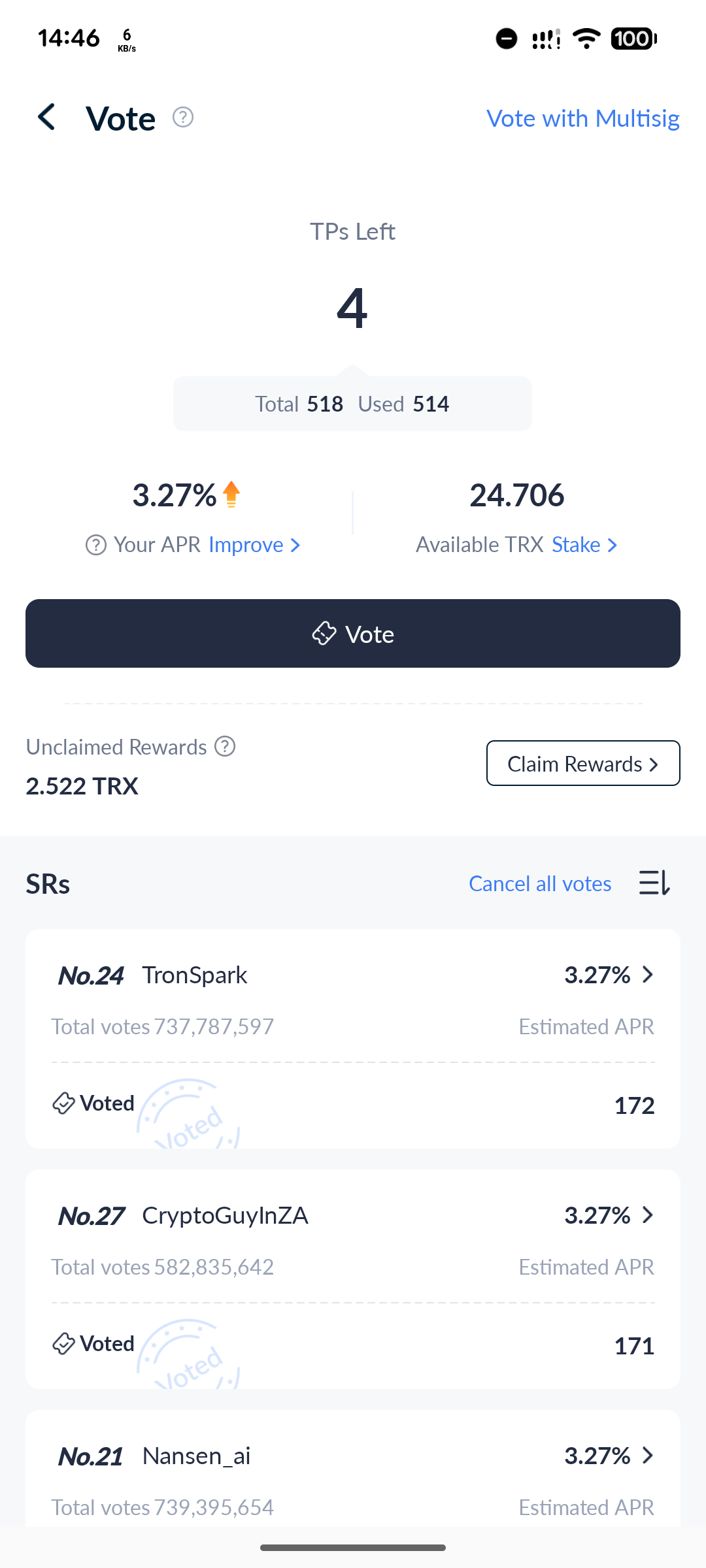This is how I staked my TRX & voted to SRs. Below, I'm sharing my TRX staking list:-