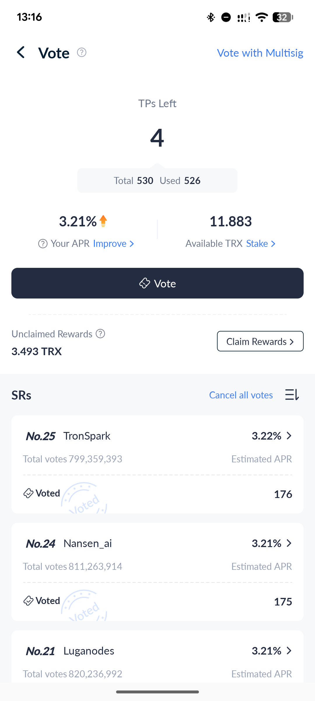 This is how I staked my TRX & voted to SRs. Below, I'm sharing my TRX staking list:-