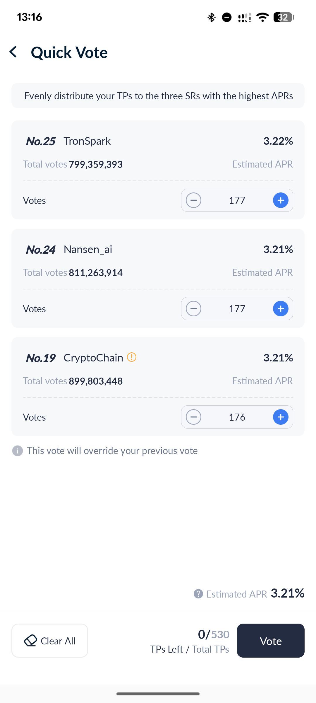 In this step, I'm quick voting 3 SRs. You can see that from the screenshot below.