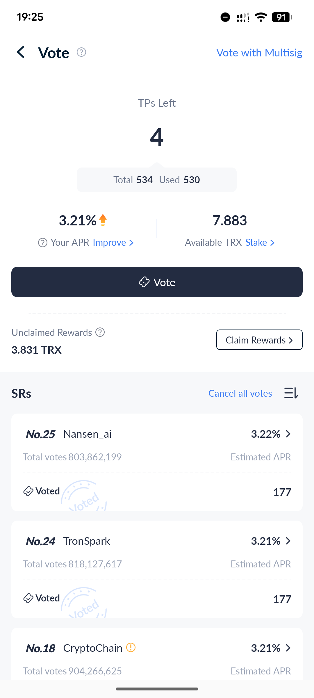 This is how I staked my TRX & voted to SRs. Below, I'm sharing my TRX staking list:-