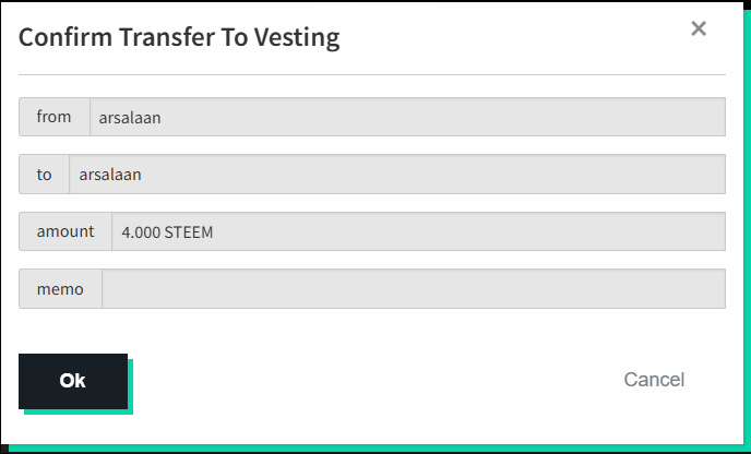 Here, I'm powering up total of 4 SP and confirming my transaction.