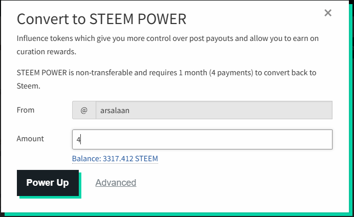 Here, I'm powering up total of 4 SP and confirming my transaction.