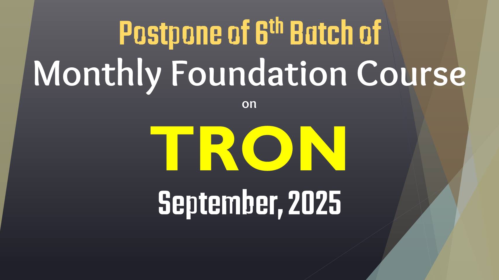 Prospone of 6th Batch of “Foundation Course on TRON” (September 2025)