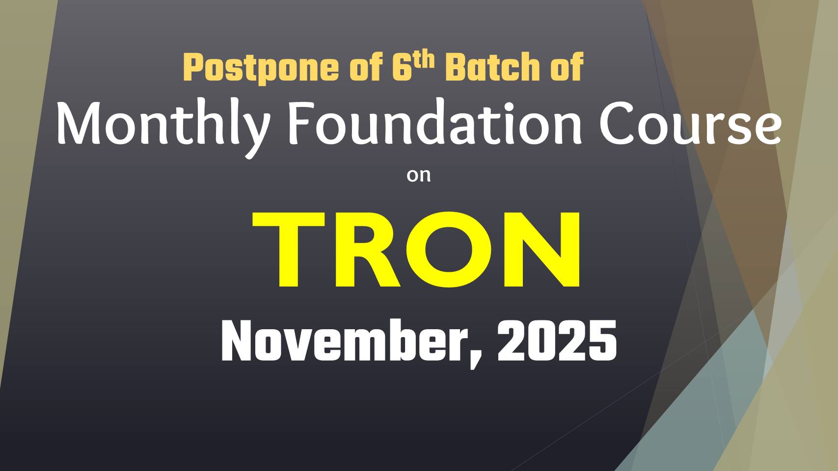 Prospone of 6th Batch of “Foundation Course on TRON” (November, 2025)
