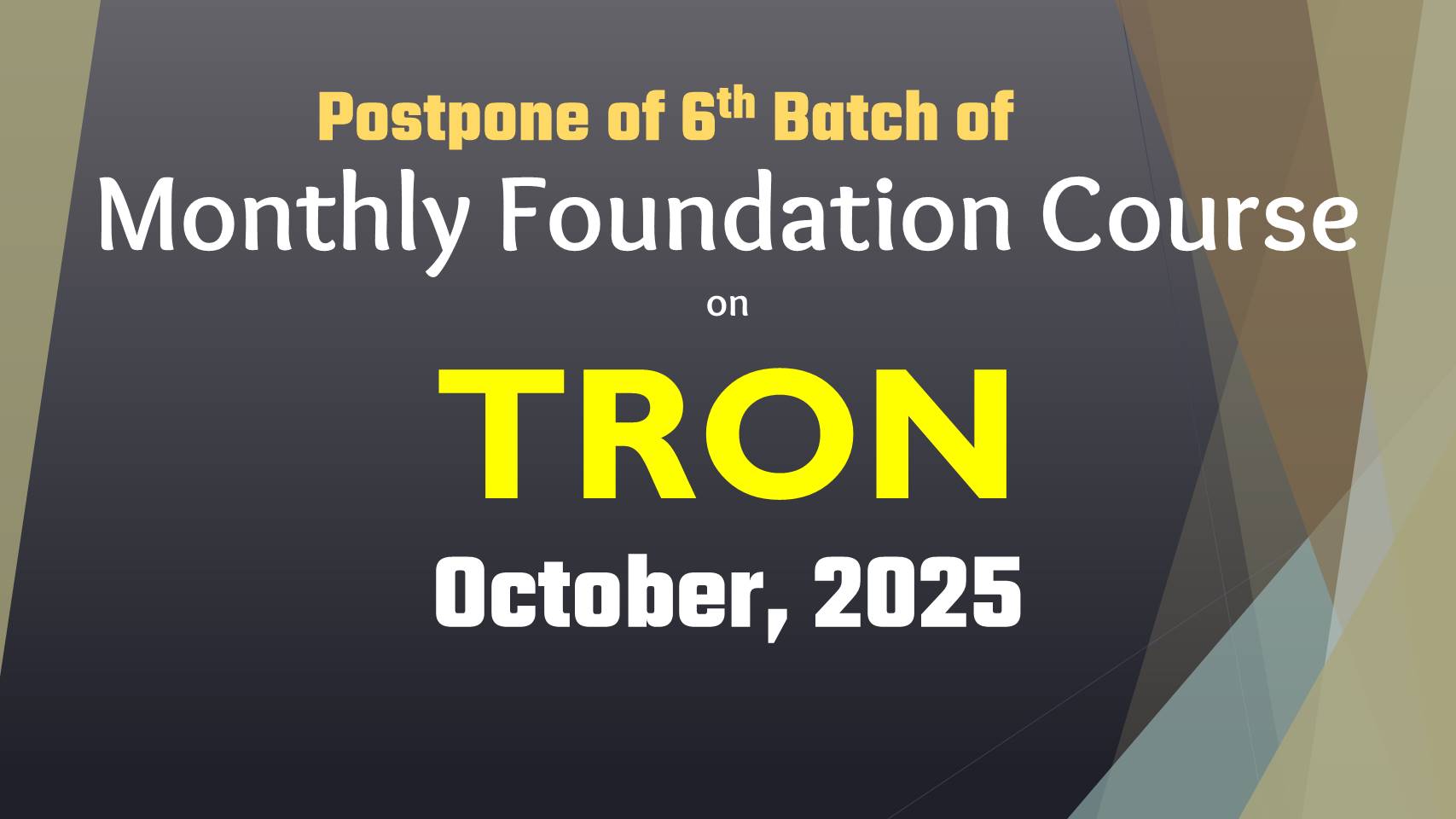 Prospone of 6th Batch of “Foundation Course on TRON” (October, 2025)