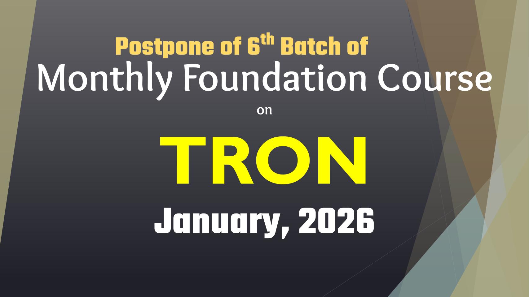 Prospone of 6th Batch of “Foundation Course on TRON” (Janurary, 2026)