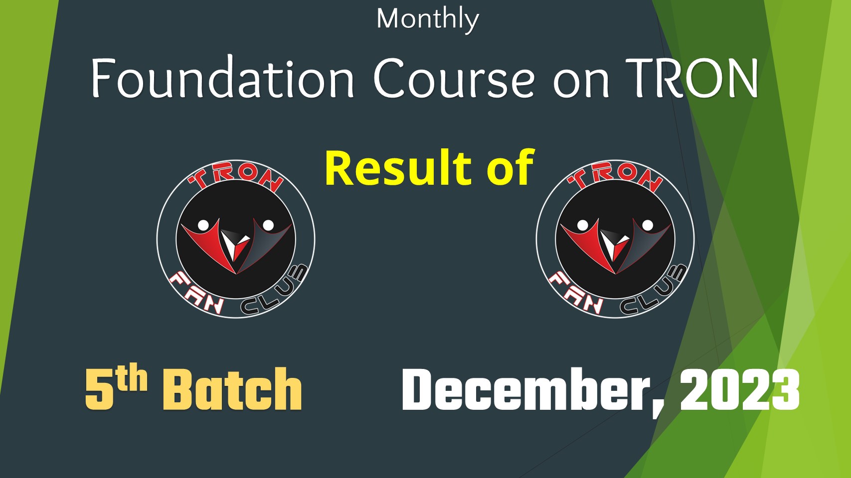 Result of Foundation Course on Tron (5th Batch, December/2023)