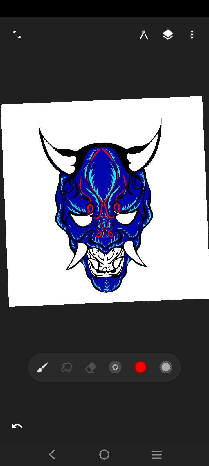 I have selected red color from the color option. I will make different parts of the face art with red color. With a brush I have done art with red color on different parts of the face.