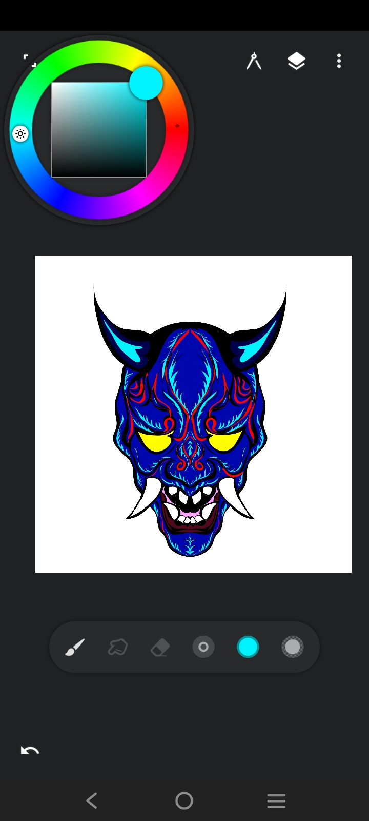 First I selected a brush to do the art. Then I sketched the monster's face with black paint.