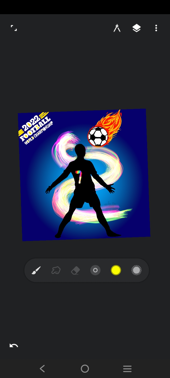 Then I made fire art around the ball with yellow paint. After that, I designed the fire with red paint and made a ball of fire from the ball.