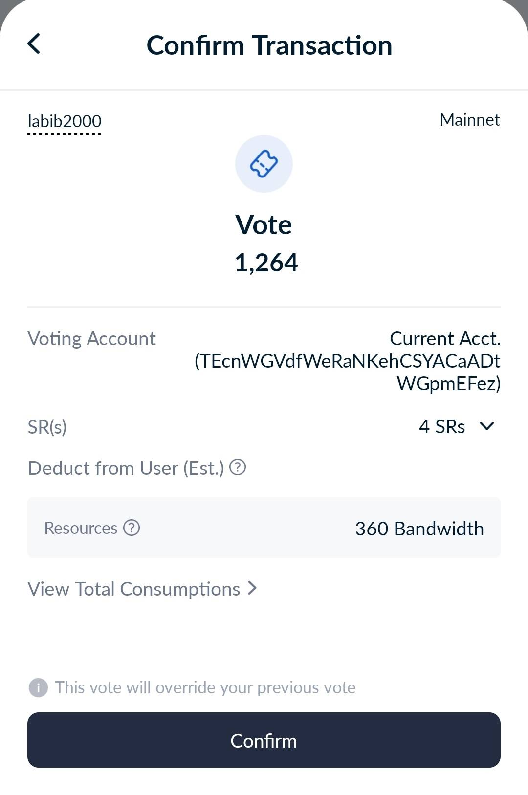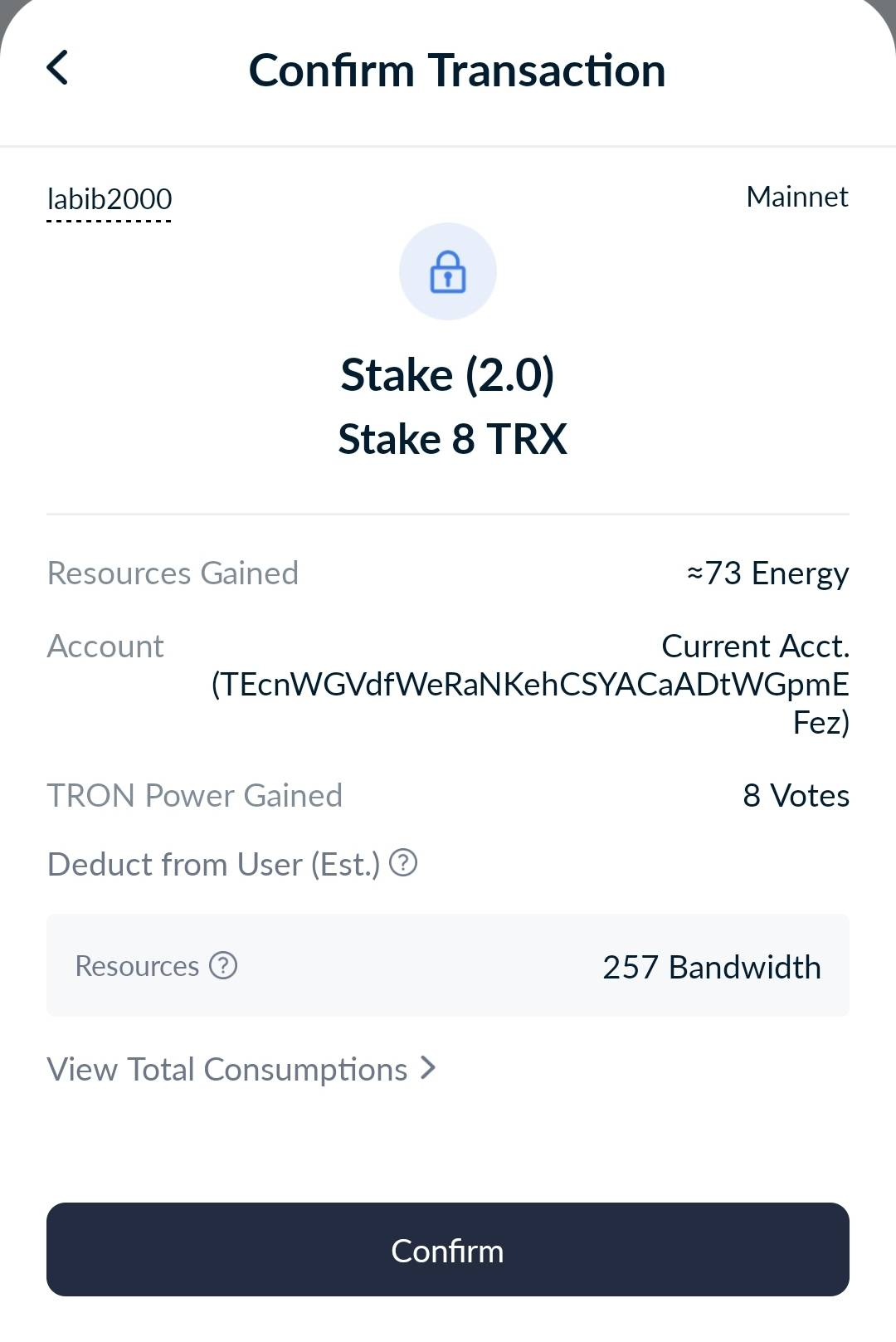 Today I'll be staking 08 additional TRX and will be voting for the super representatives with the newly gained tron powers. The transaction of my today's trx staking and voting is provided below...