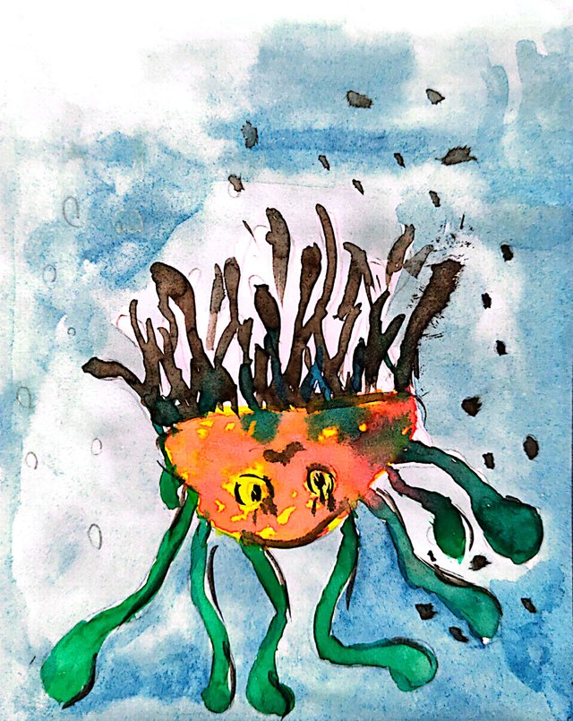 Now, This art is a very unique hand drawn which I liked the most about it. The octopus merged with jellyfish is looking very mysterious to me which was made by @rabiul365. The use of different colors was also pretty good. The main Plus point of the art was the idea of merging two sea creatures together which was pretty clever and it was done very well.