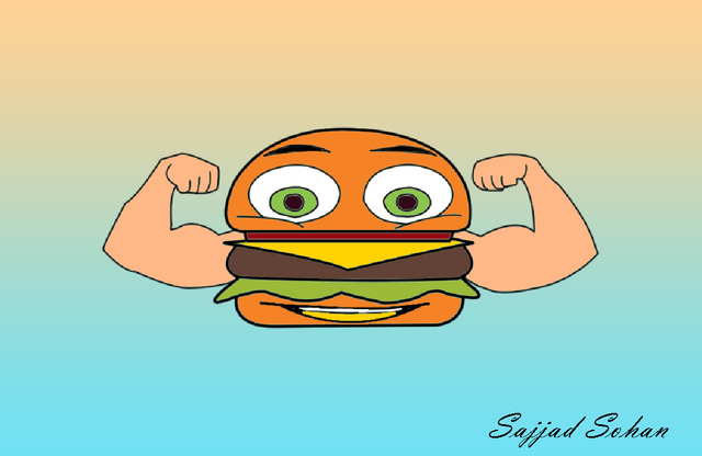 This art of a bodybuilder burger was shared by @sajjadsohan. A very simple art yet made very unique with the idea of making this burger as a bodybuilder figure type. But working on the background of the art is suggested. An eye catchy background would make this art even better. Hope to see some good arts from @sajjadsohan in the future. Good luck.