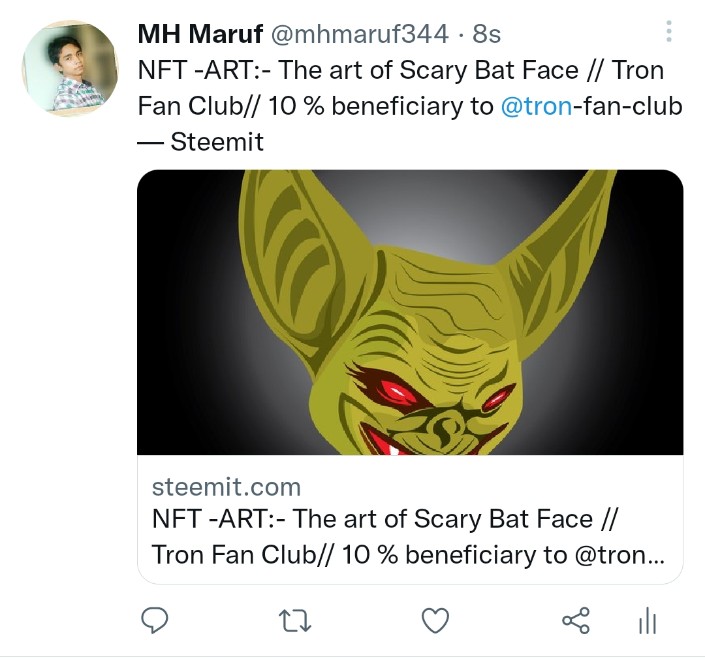 NFT -ART:- The art of Scary Bat Face // Tron Fan Club// 10 % beneficiary to @tron-fan-club