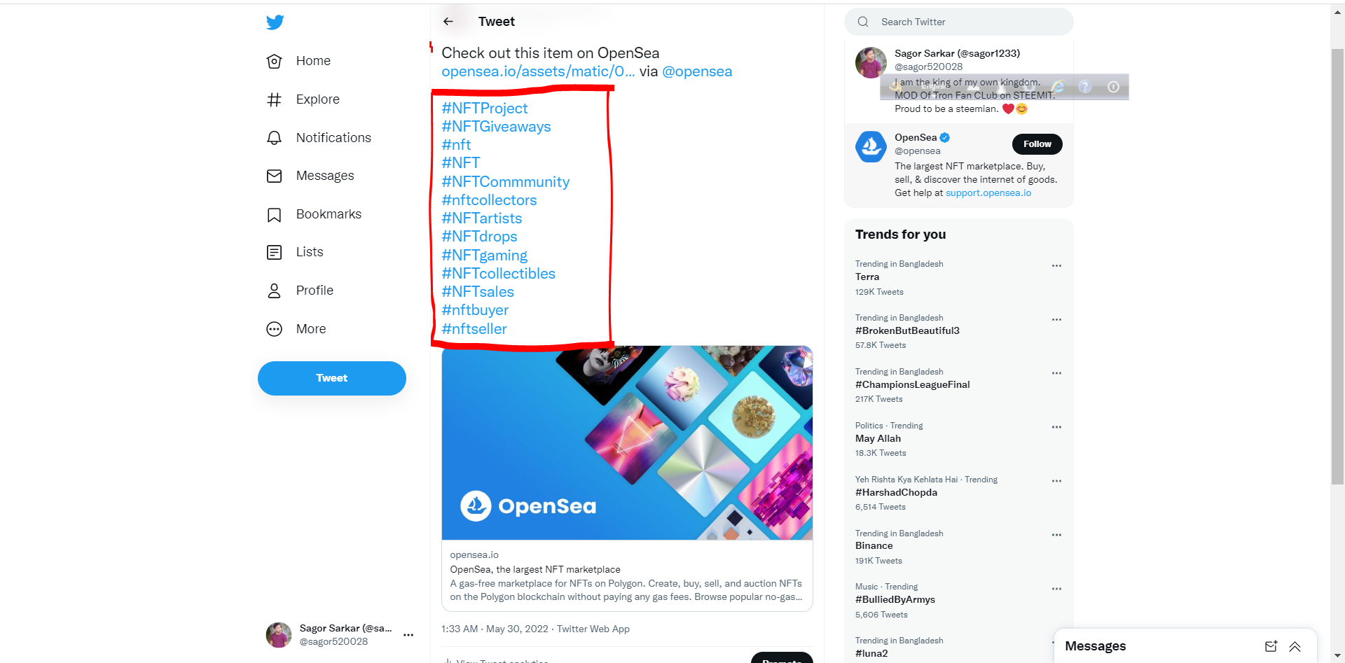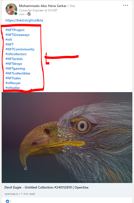 Today we will see how it is possible to make an impression on NFT by sharing on social media. Traders spend more time on social media than they spend in the NFT marketplace. Due to which, sharing NFT on social media is a very important issue. When these NFTs are shared on social media, those posts are shown to NFT-related users. Then those users enter the NFT marketplace through that link and buy / sell NFT. Many hashtags are used to promote these links. These hashtags bring a lot of impressions and engagement to NFT promotion links. This makes it possible to promote NFT at no cost and in an organic way. Due to which, it is possible to control everything very easily and without any hassle.