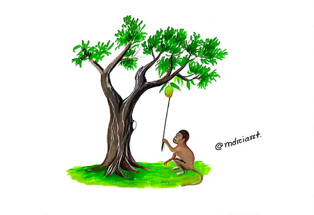 Short Description:- This art is done by @mdriart. This art reveals the dependence of these fauna on plants. This artist has presented it very nicely. A monkey is trying to plant a mango. If he wanted, he would climb the monkey tree and pick mangoes. Because he is lazy, he is not climbing the tree, he is just picking mangoes from below. |