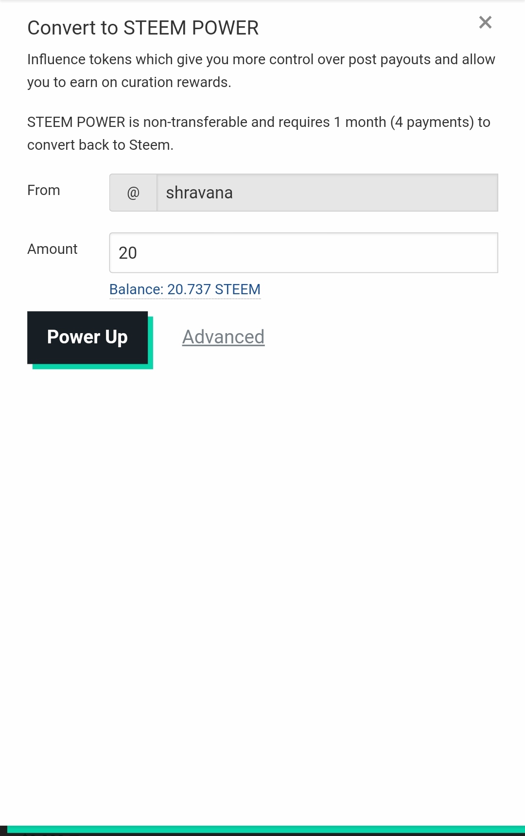 | Steem Power up | 20 |