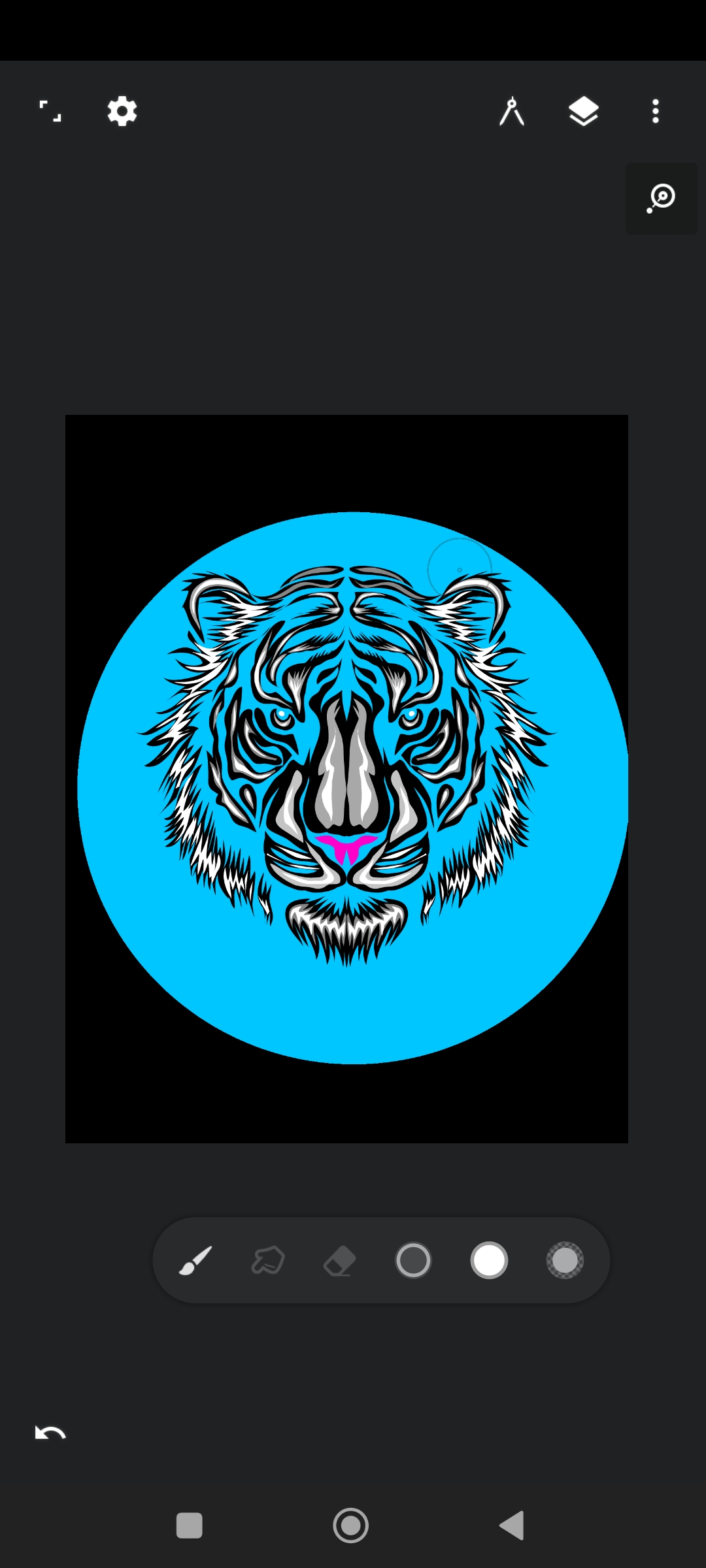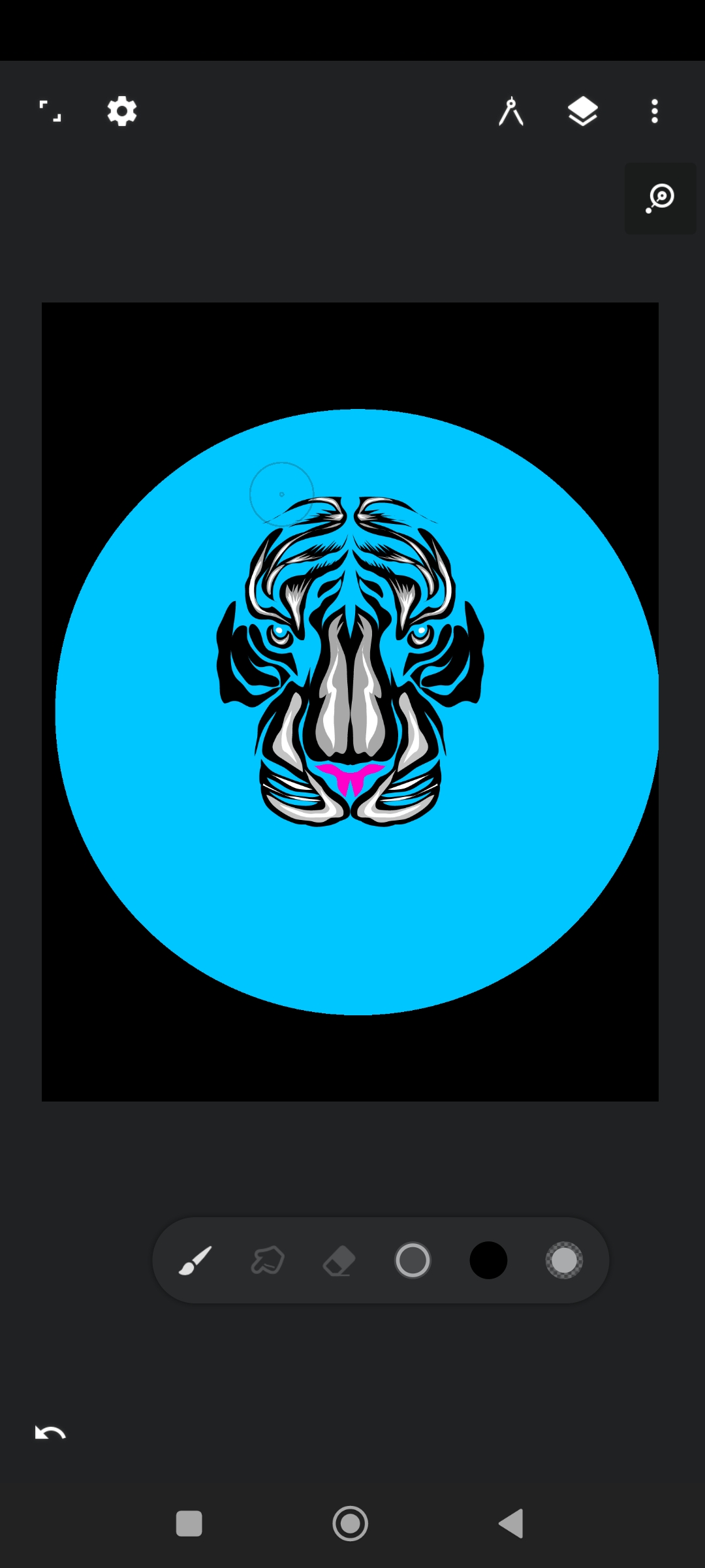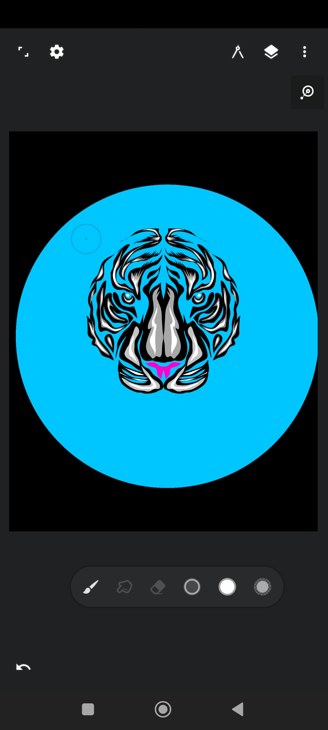 After that I drew little by little the two eyes of the tiger and some parts next to the eyes.