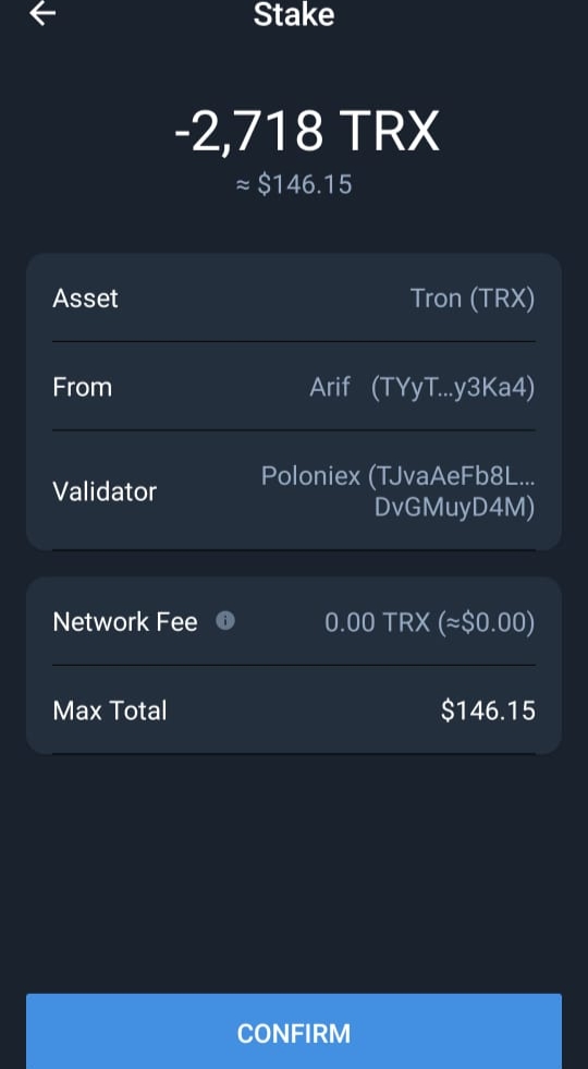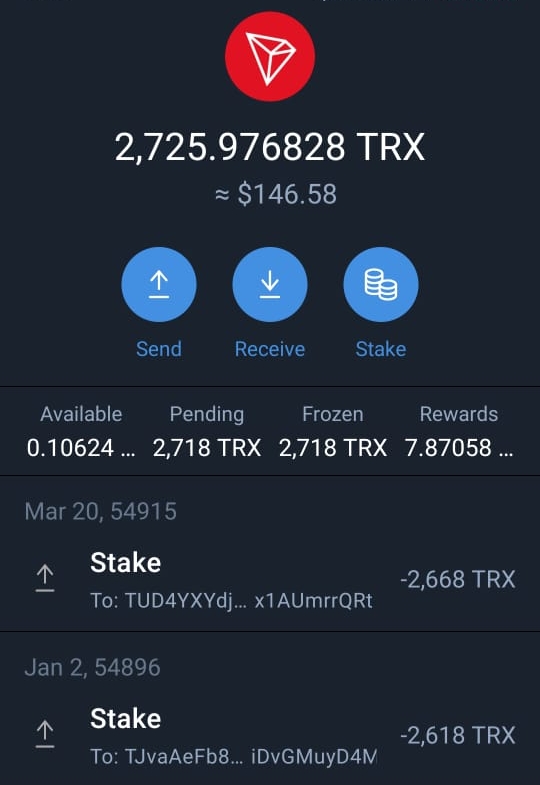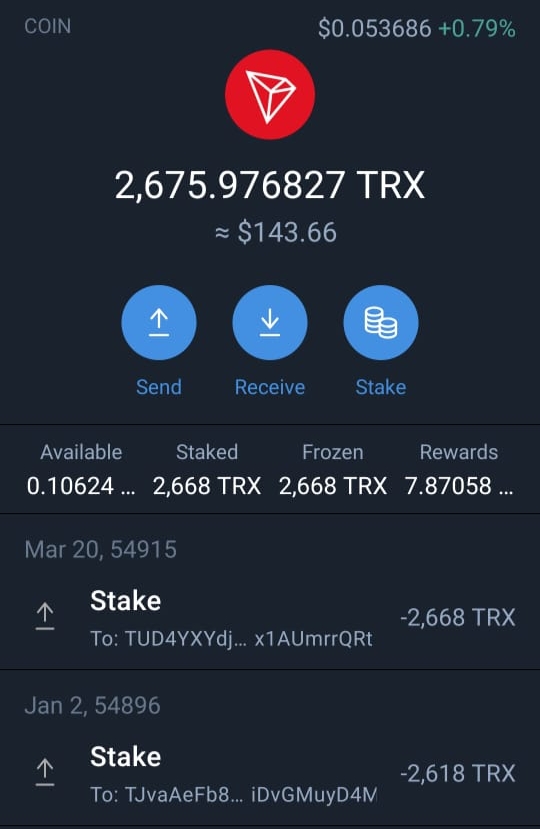 ট্রন জমা করার পর আমার ট্রন ওয়ালেটের স্ক্রীনশট।