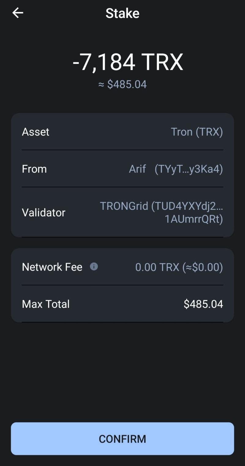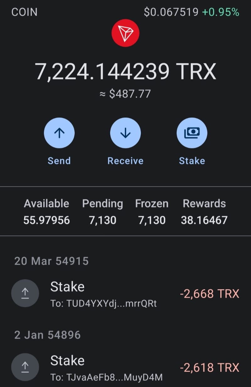 ট্রন জমা করার পর আমার ট্রন ওয়ালেটের স্ক্রীনশট।