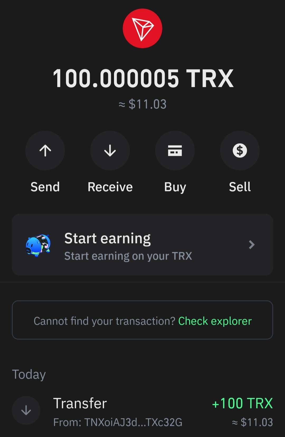ট্রন জমা করার পর আমার ট্রন ওয়ালেটের স্ক্রীনশট।