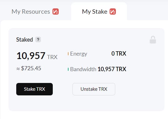 ট্রন জমা করার পর আমার ট্রন ওয়ালেটের স্ক্রীনশট।