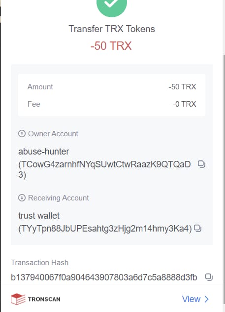 আমার ট্রন ওয়ালেট এড্রেস এর স্ক্রিনশট।