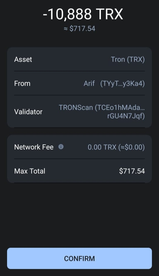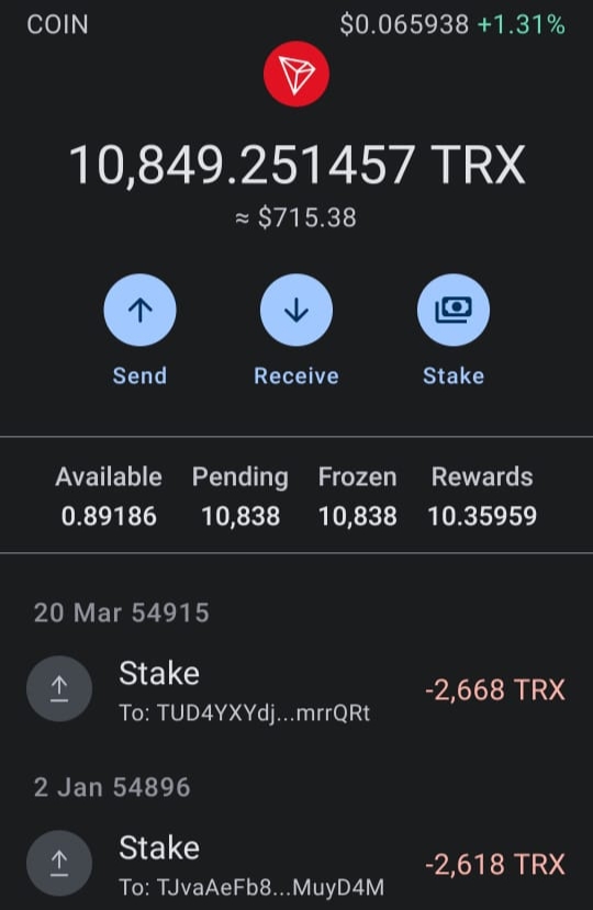 ট্রন জমা করার পর আমার ট্রন ওয়ালেটের স্ক্রীনশট।