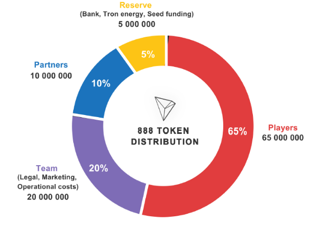 Since the 888Tron blockchain will work on the network, TRX, which is the project's token, will be used to carry out the work and transactions on the platform. Only by playing games and mining, the number of symbols will be 100 million.