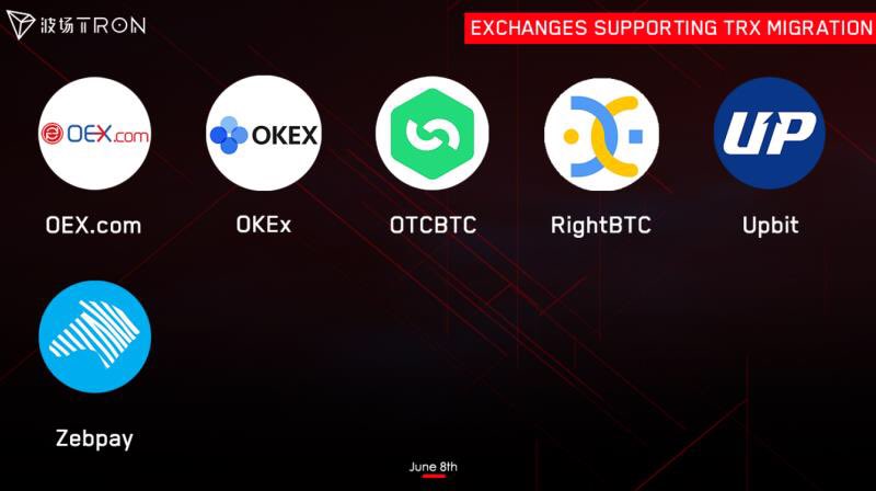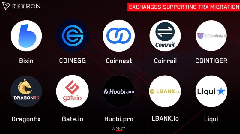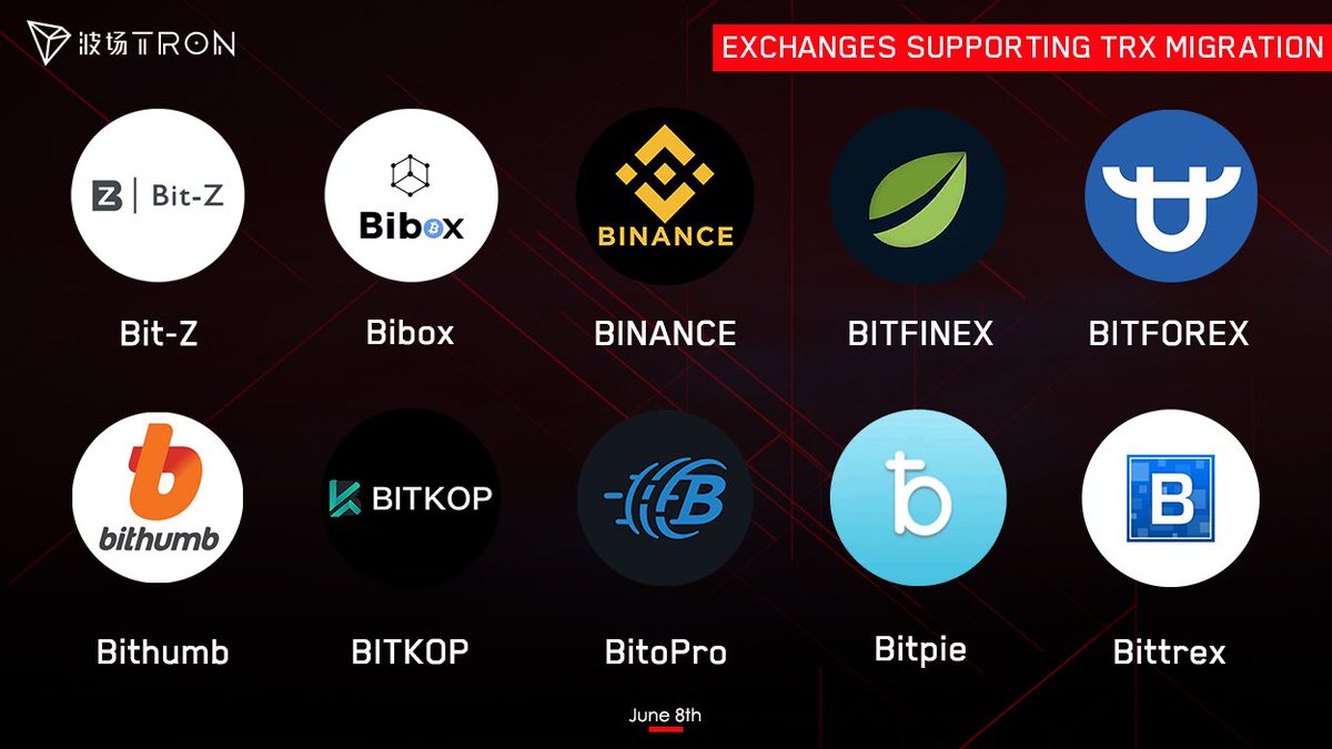 In a tweet Justin Sun has confirmed these supported exchanges as :