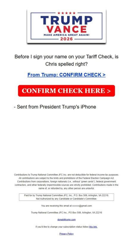 Story: Trump and JD Vance send out another bogus check email