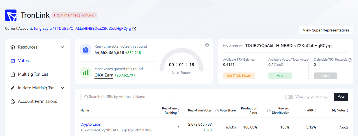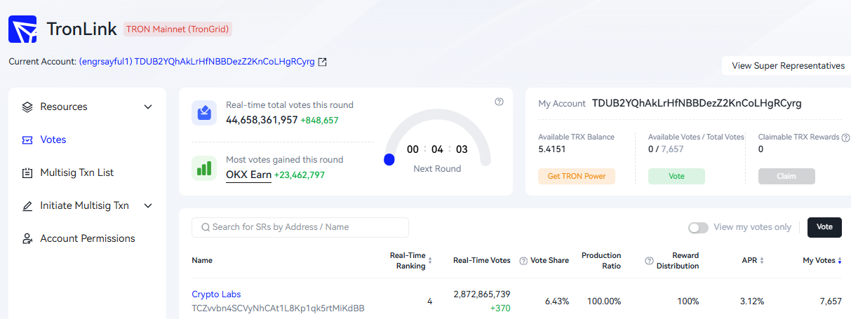 INTROThis is my participation to an initiative called TRX Friday. Every Friday, I stake TRX and vote with Tron Power (TP) to Super Representatives.