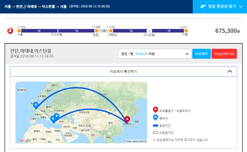 서울 → 런던 // 아테네 → 이스탄불 → 서울
