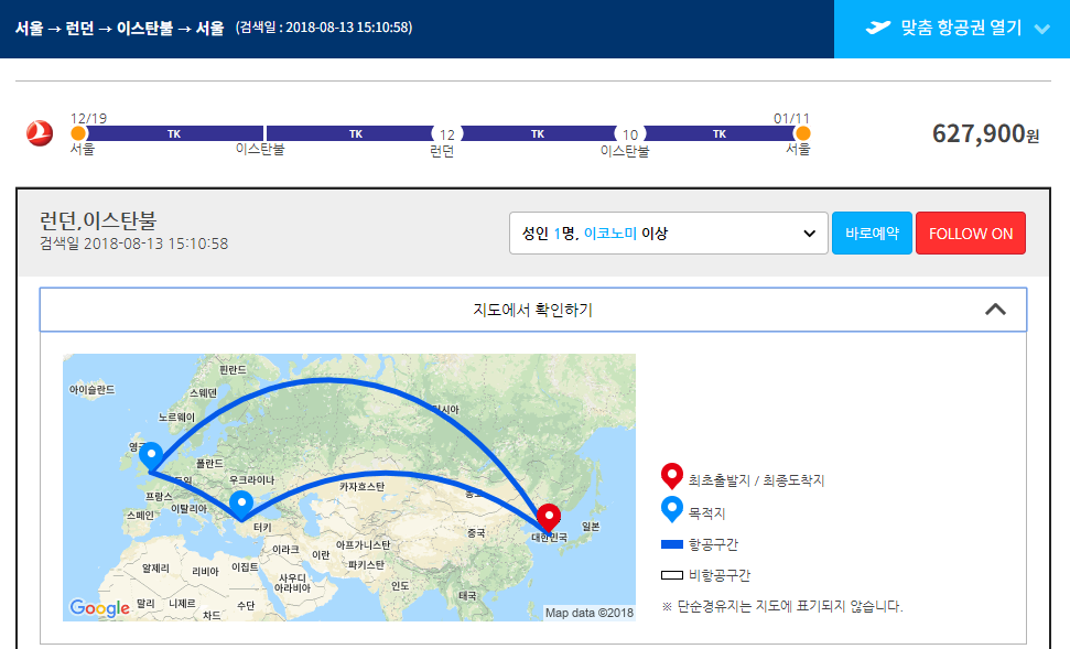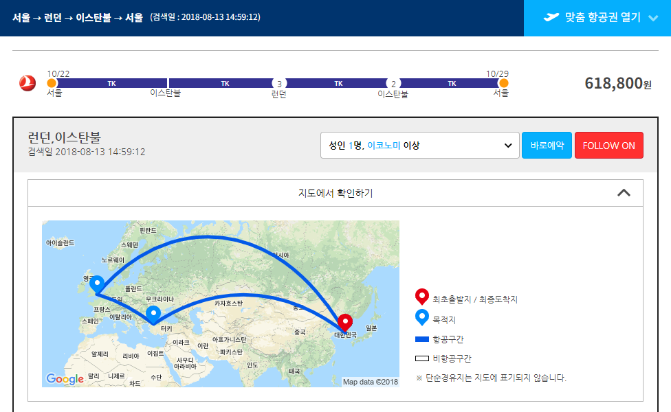 특가 시작일인 10/22 출국하는 항공권 입니다. 이번에도 역시 영국쪽에 최저가 운임을 내놓았습니다. 보통의 경우에 귀국편은 영국에서 나오는것을 금기시했습니다. 장거리 편에 대한 높은 공항세 때문이죠. 위 항공권 처럼 이스탄불에서 스탑오버시에는 높은 공항세를 물지 않습니다. 10월 안으로 터키 까지 둘러보고 올수 있다면 61만원대로 다녀올 수 있습니다.