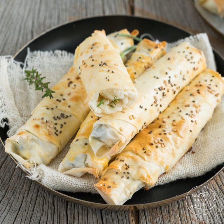 Due to their shape, they were originally called sigara böreği, but since 2011, Turkish confectioners have called them bald to avoid the connection with smoking. They are usually filled with feta cheese, potatoes and parsley, but can also be enriched with minced meat or sausage and vegetables such as spinach, nettles, leeks and zucchini. Paçanga böreği is a fried variant from Istanbul that is filled with pastırma or kasar and chopped green peppers. Saray böreği or palace börek is a truly decadent variant, in which fresh butter is rolled between the dough sheets, while kol böreği or arm börek is the classic variant prepared at home, in the form of long, round or lined rolls, usually with minced meat, feta cheese, Spinach or potatoes are stuffed (the smaller and fatter variant is called sarıyer böreği, named after Sarıyer, a district of Istanbul where it is traditionally prepared).