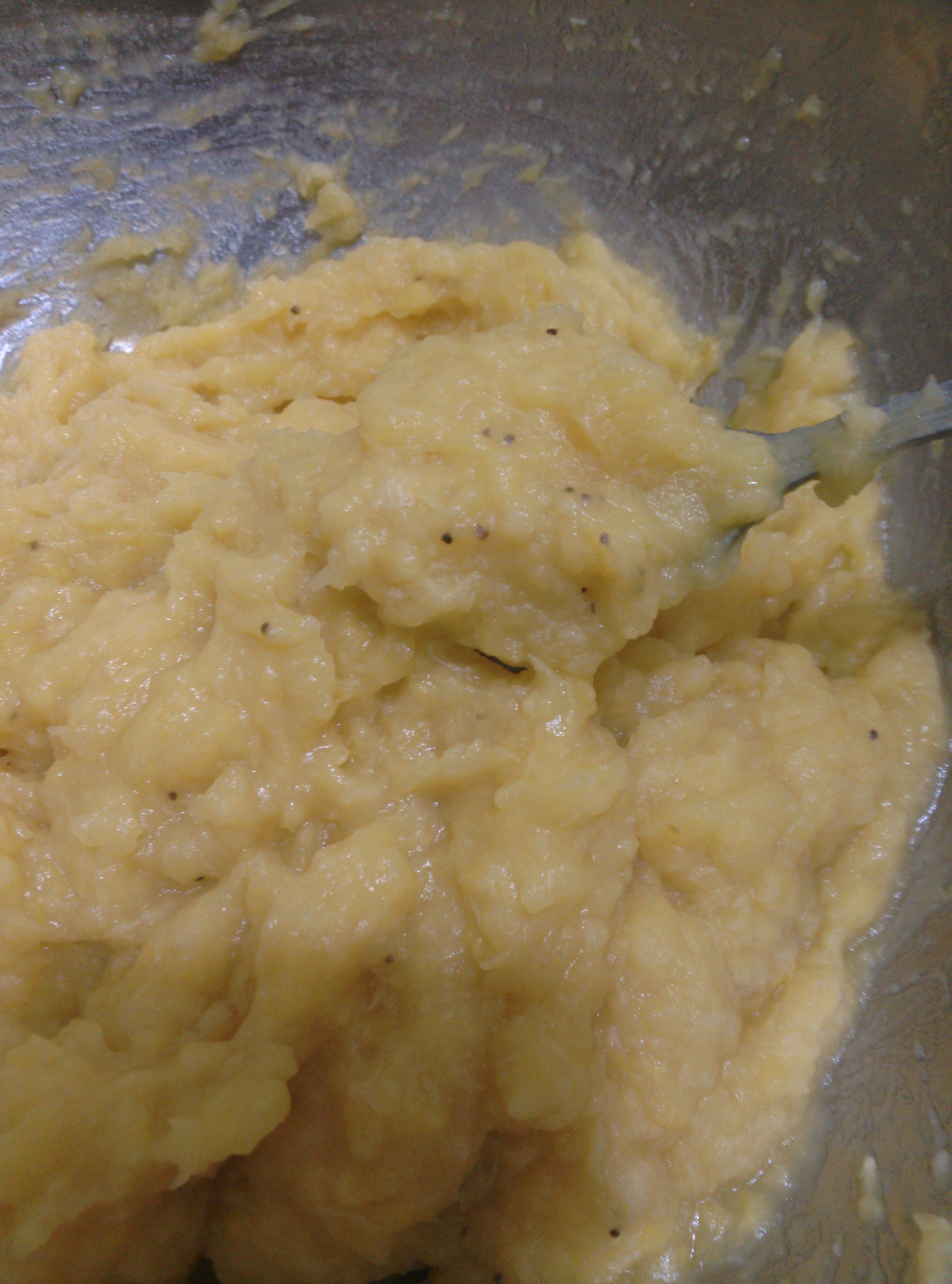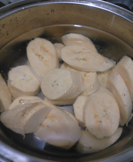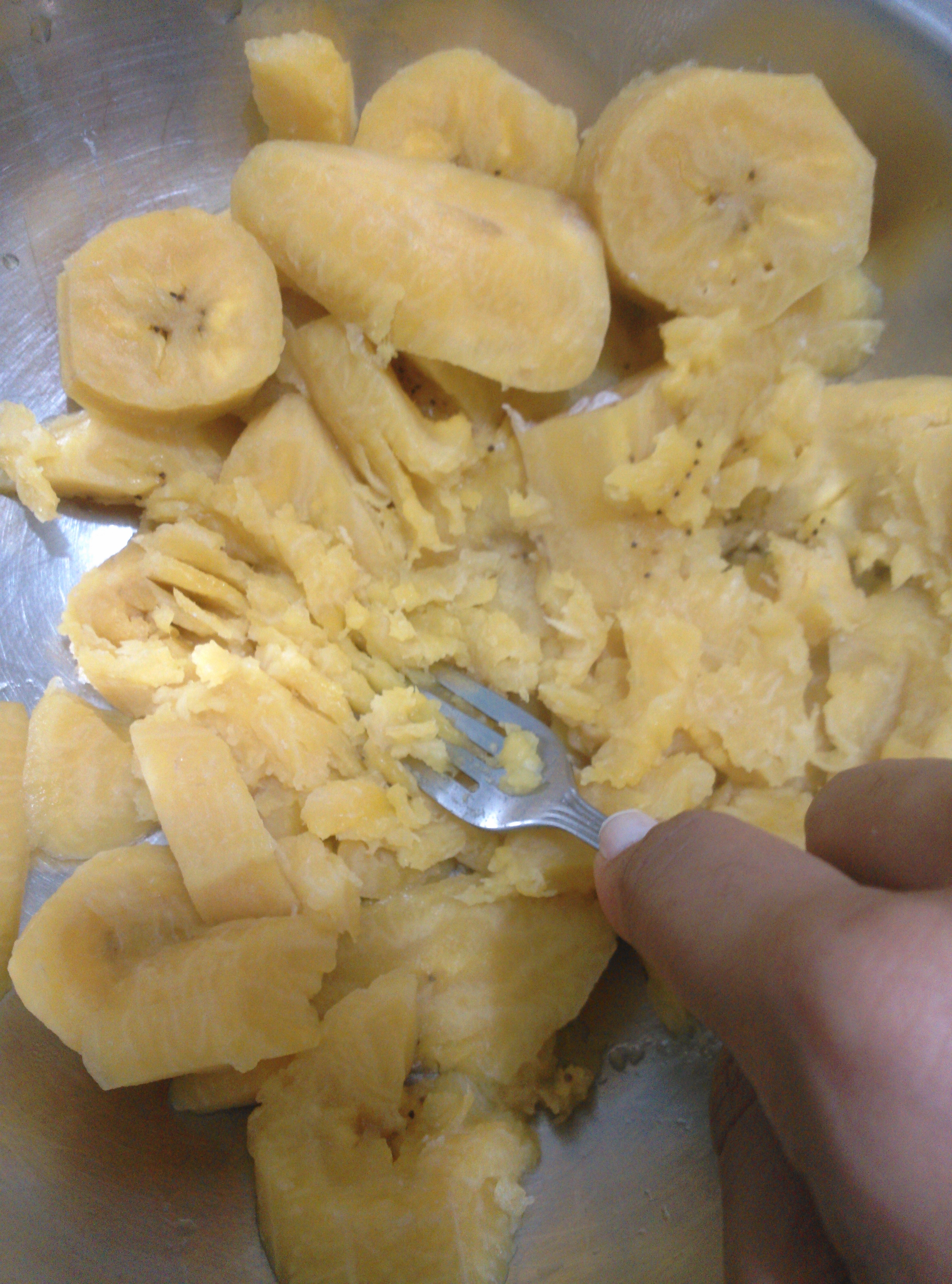 4.- Luego de que hayan enfriado un poco, trítura los trozos de plátano con un tenedor o con cualquier herramienta que consigas útil para eso. La idea es formar un puré.