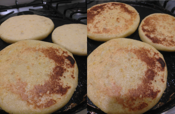 Estas arepas se pueden hacer fritas o asadas, de ambas formas son deliciosas. Si las quieres fritas pon a calentar una sartén con suficiente aceite por unos minutos mientras terminas de amasar. En caso de que las quieras asadas, pon a calentar una plancha, budare o lo que normalmente utilizas para hacer las arepas, siempre colocándole ligeramente un poco de aceite para evitar que se peguen.