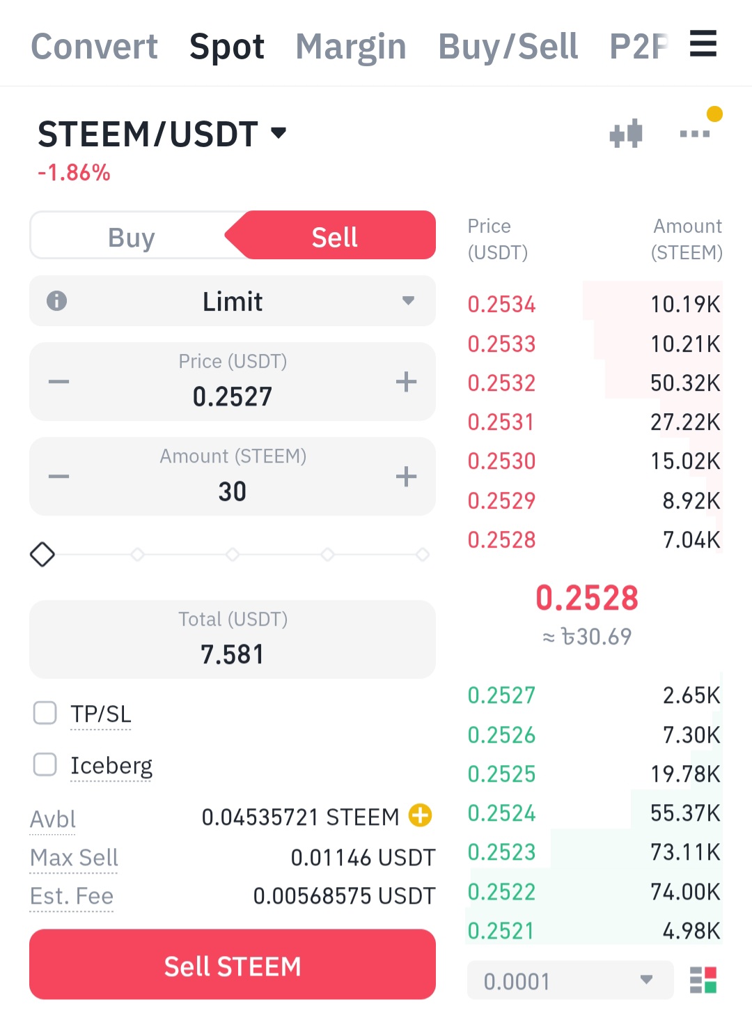 এরপর steem সেল দিয়ে যে usdt পেয়েছিলাম সেটি দিয়ে এই কয়েন ক্রয় করব।