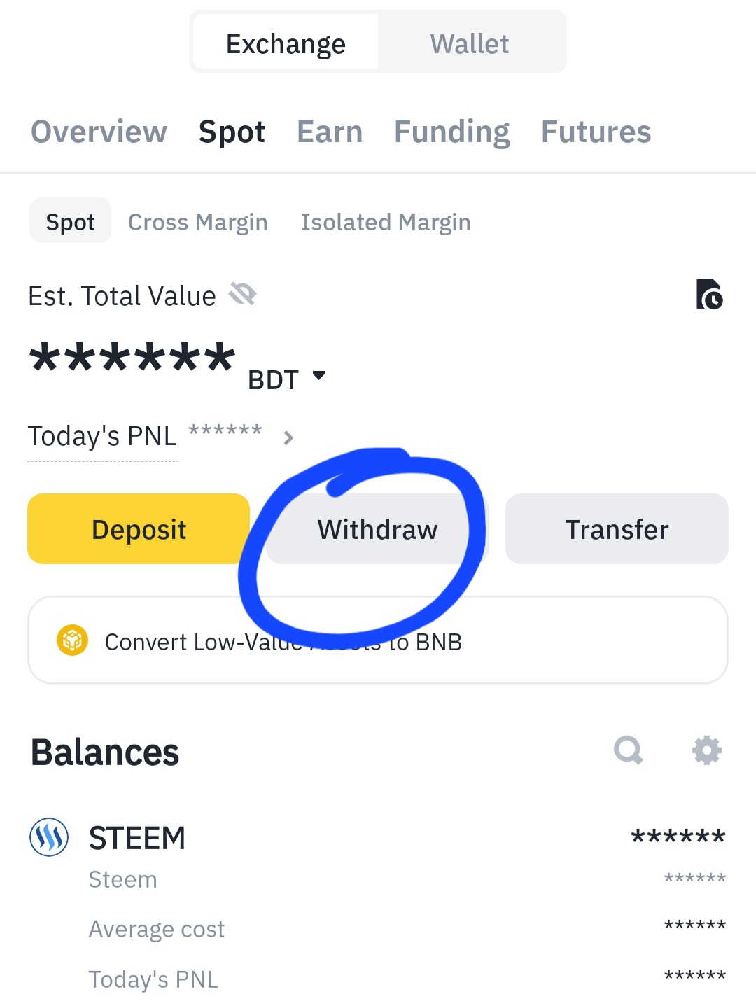 এরপর আবারো চলে আসব বাইন্যান্স e. Binance এ ওয়ালেট এ ক্লিক করে সেখানে withdraw অপশনে ক্লিক করব।