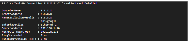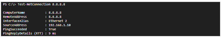 On recent Windows systems, the telnet utility is not installed by default. This tool usually allows you to test the ports to the server, e.g. whether the FTP port is open. However, with the help of the Test-NetConnection command, we can also check whether a given port is open when performing a ping.