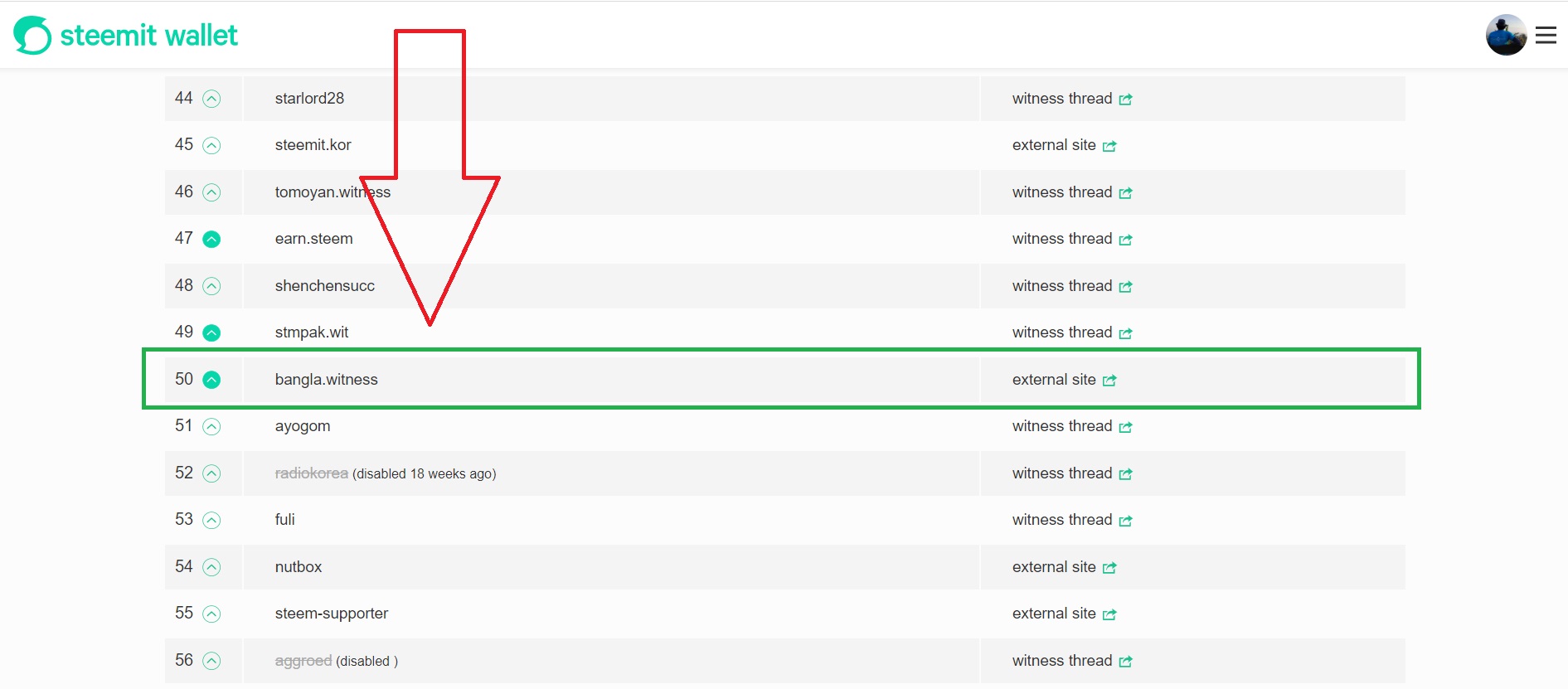 তারপর মাঝ বরাবর Bangla.Witness টির অবস্থান দেখতে পাবেন, কারন আমি যখন টিউটোরিয়ালটি তৈরী করছিলাম তখন এর অবস্থান ছিলো ৫০তম। Bangla.Witness এর বাম পাশে এবং সিরিয়ালের ডান পাশে একটা Up-Arrow দেখতে পাবেন, সেখানে ক্লিক করার একটু পরই দেখবেন সেটা উজ্জ্বল হয়ে ভরে গিয়েছে। তাহলেই বুঝতে পারবেন আপনার ভোট সম্পন্ন হয়েছে। পরবর্তীতে সেখানে আর ক্লিক করতে হবে না। উপরের ছবিটি দেখুন, ভোট দেয়ার পর Up-Arrowটি উজ্জ্বল হয়ে গিয়েছে।
