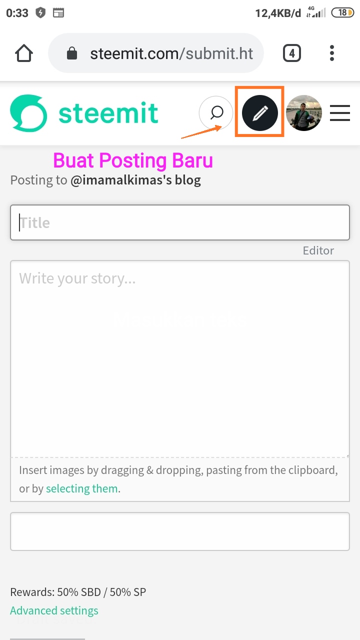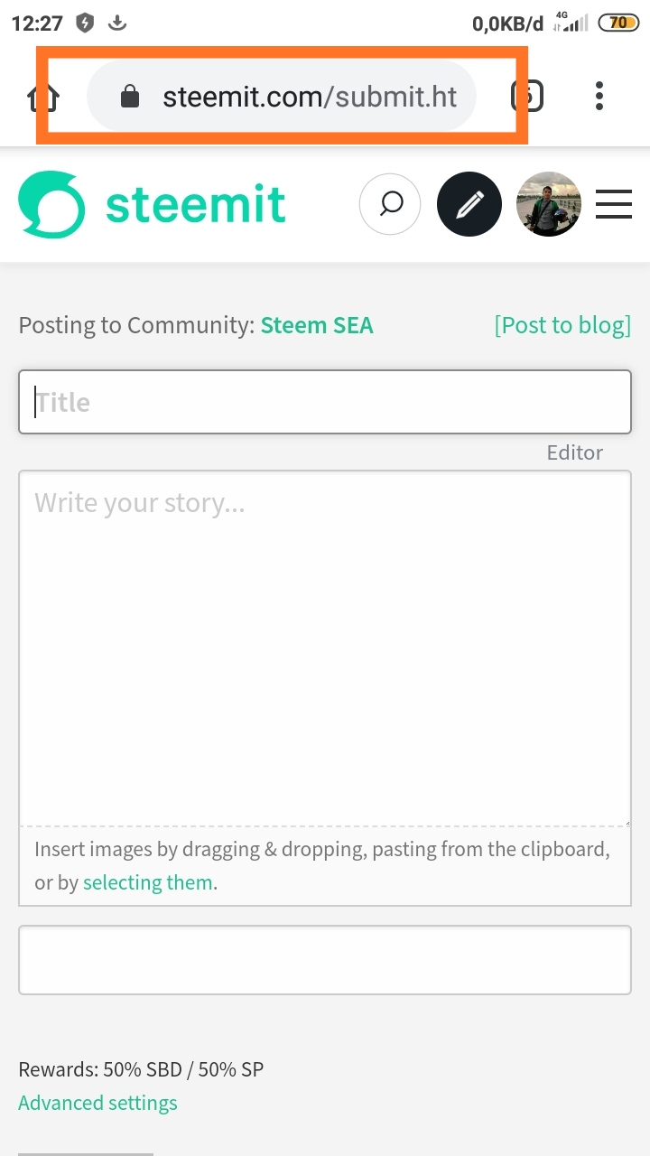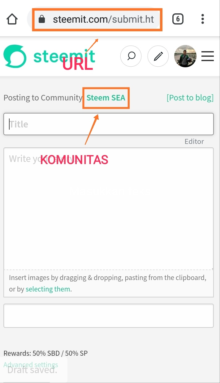 - Sekarang klik pada URL dari halaman Anda Saat ini, Anda akan melihat sebagai "Steemit.com/submit.html"