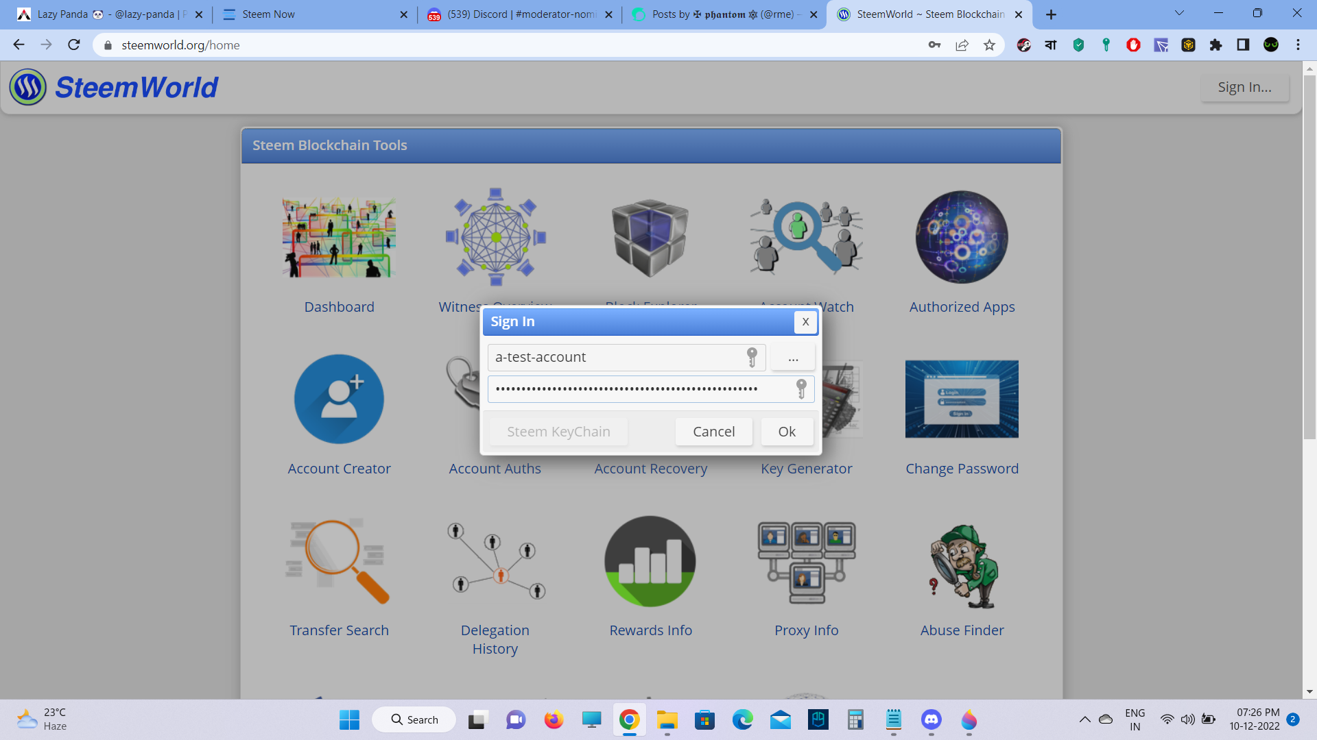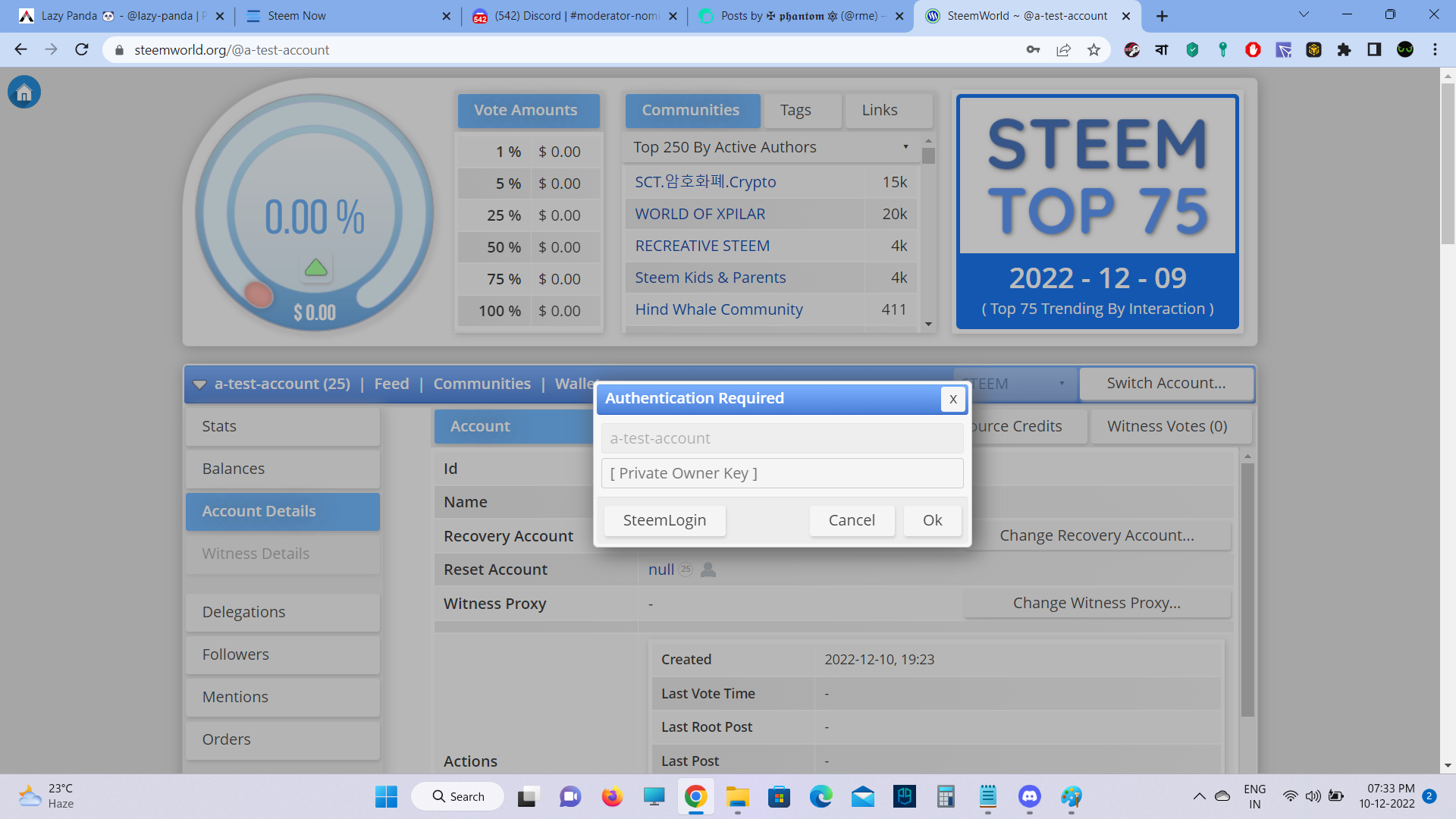 ২. লগইন বাটনে ক্লিক করুন । একটি লগইন বক্স আসবে । সেখানে আপনার স্টিমিট আইডি এবং posting key দিয়ে লগইন করুন । আমি এখানে @a-test-account নামে একটি স্টিমিট একাউন্ট ইউজ করেছি টিউটোরিয়াল তৈরী করার জন্য ।