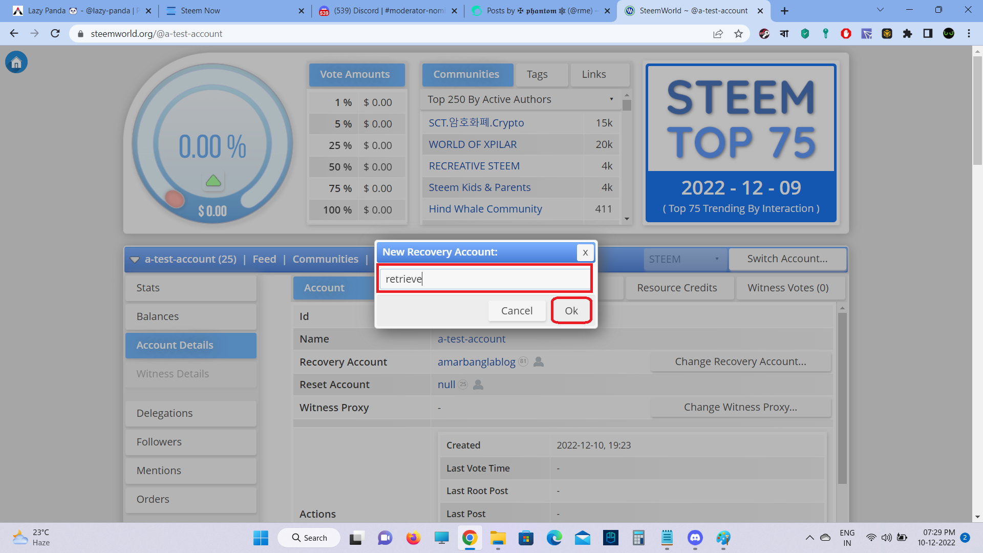 কীভাবে আপনার স্টিমিট একাউন্ট এর রিকভারি একাউন্ট হিসেবে @retrieve -কে সেট করবেন ?