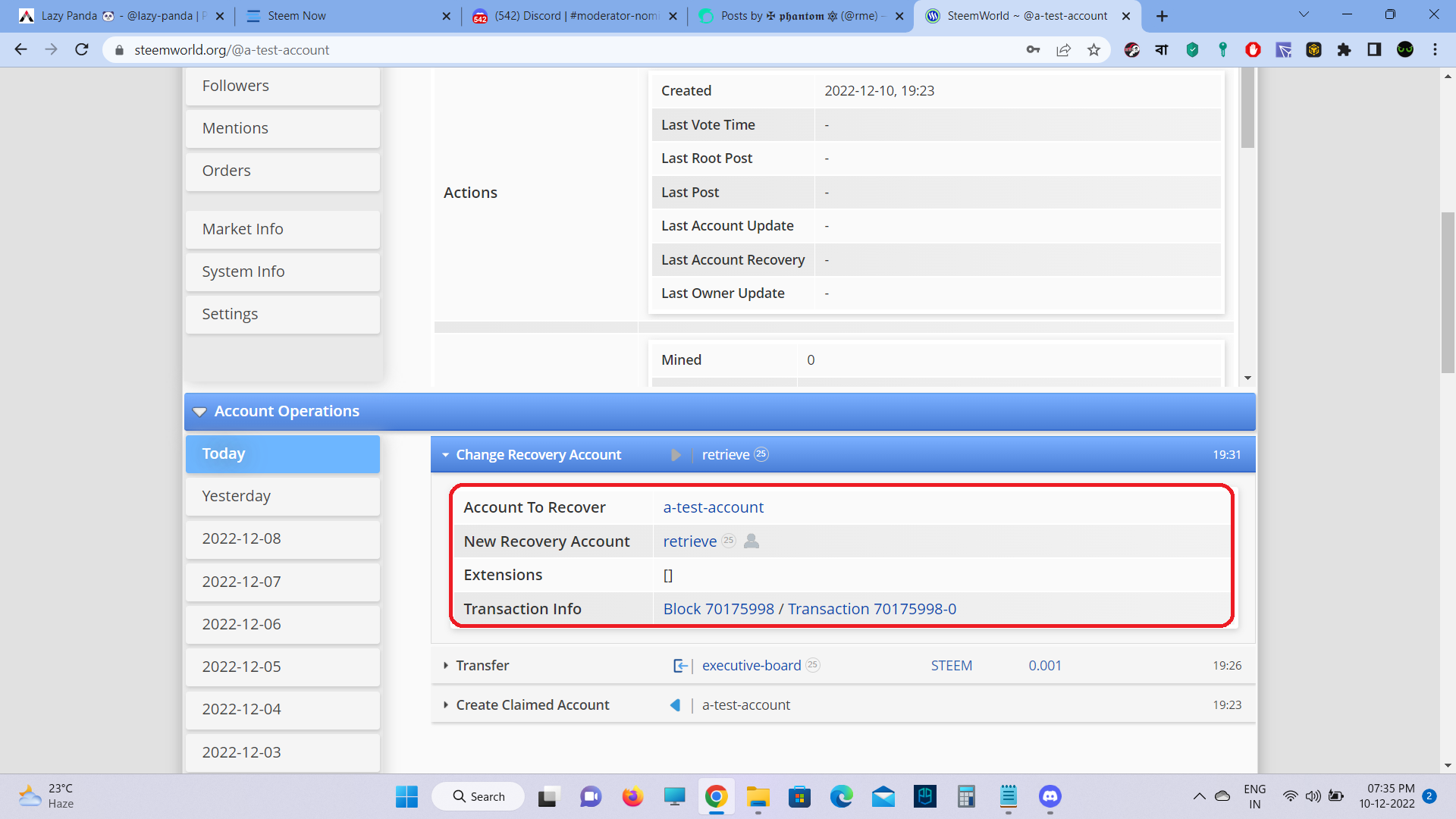 ১০. রিকভারি সেট করার প্রসেসটা ব্লকচেইন এ ভেরিফাই করার জন্য একটু স্ক্রল করে নিচে নামুন । দেখুন আপনার রিকভারি সেট করার ট্রানসাকশানটা স্টিমিট ব্লকচেইনে শো করছে ।