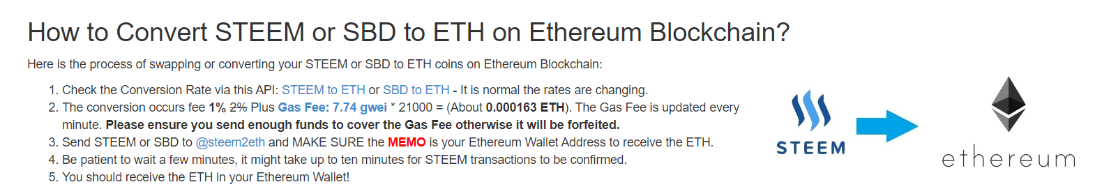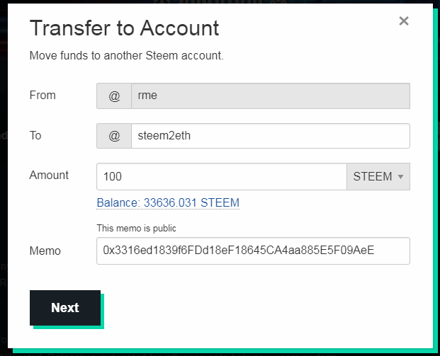 10 STEEM বা 5 SBD 💲💲💲এর চাইতে বেশি যে কোনো এমাউন্ট জাস্ট সেন্ড করুন @steem2eth এই একাউন্ট এ । মেমো হিসেবে দিন আপনার Personal Ethereum Address ।
